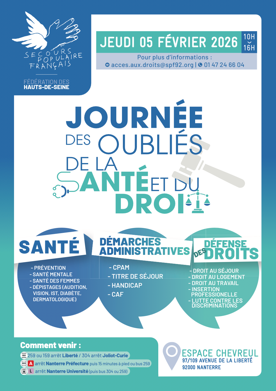 Pour plus d'informations, contacter le Secours Populaire français sur acces.aux.droits@spf92.org ou au 01 47 24 66 04.
