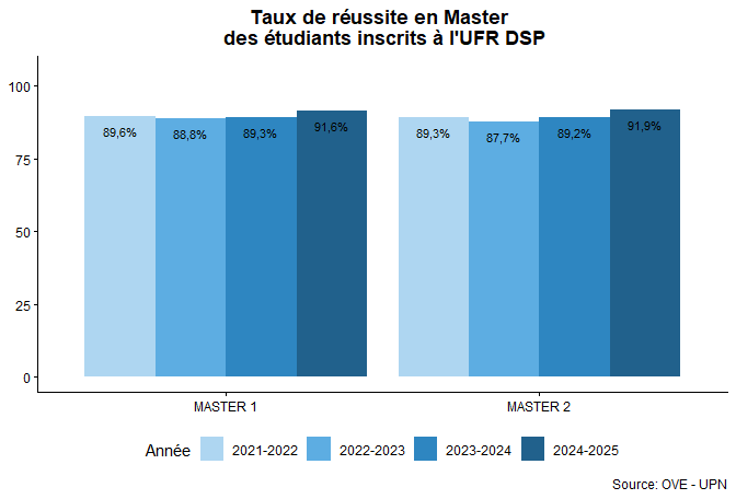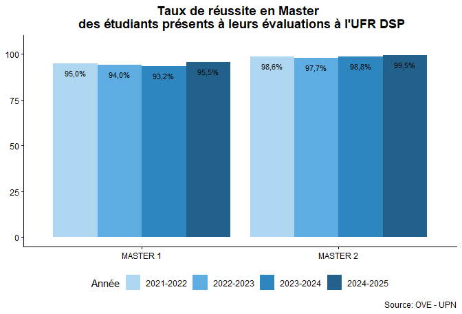 (1) En 2022-2023, 88,8% des étudiants de l'UFR DSP inscrits en première année de Master ont obtenu la mention "Admis".