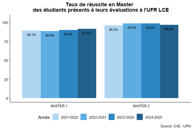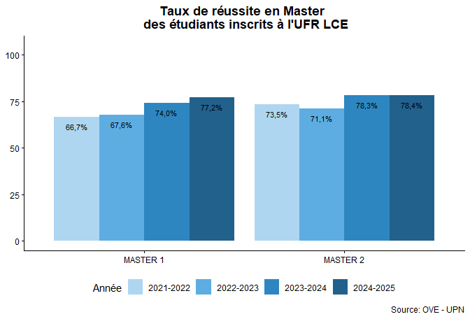 (1) En 2022-2023, 67,6% des étudiants de l'UFR LCE inscrits en première année de Master ont obtenu la mention "Admis".