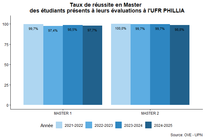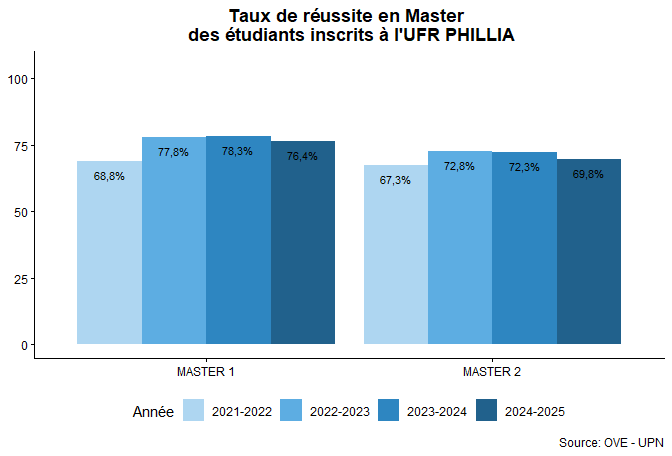 (1) En 2022-2023, 77,8% des étudiants de l'UFR PHILLIA inscrits en première année de Master ont obtenu la mention "Admis".