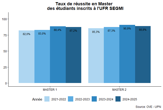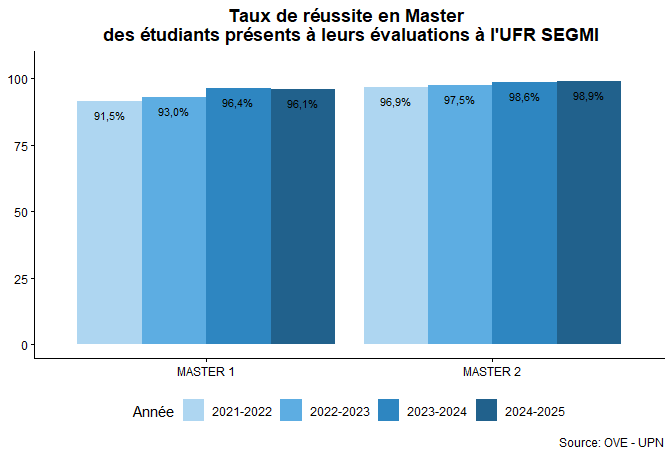 (1) En 2022-2023, 83% des étudiants de l'UFR SEGMI inscrits en première année de Master ont obtenu la mention "Admis".