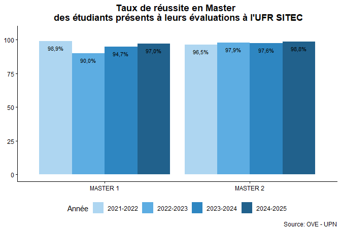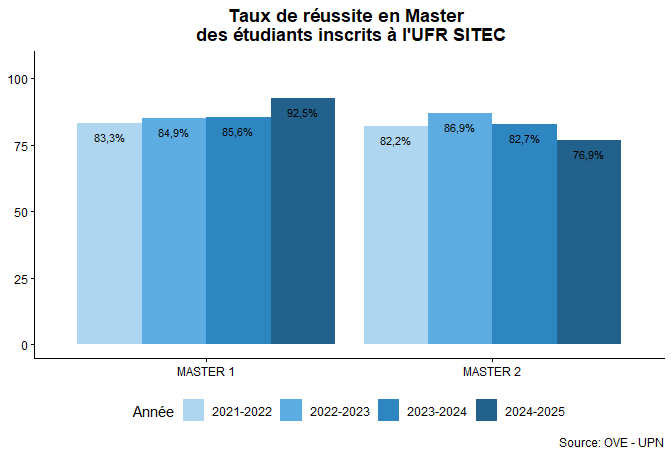(1) En 2022-2023, 84,9% des étudiants de l'UFR SITEC inscrits en première année de Master ont obtenu la mention "Admis".