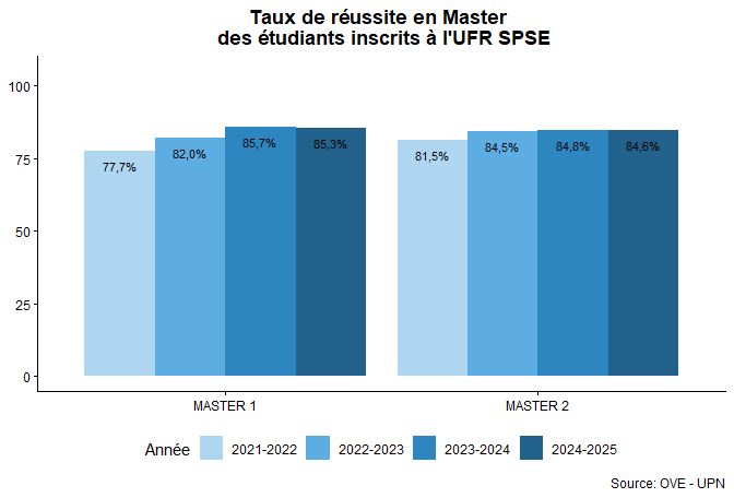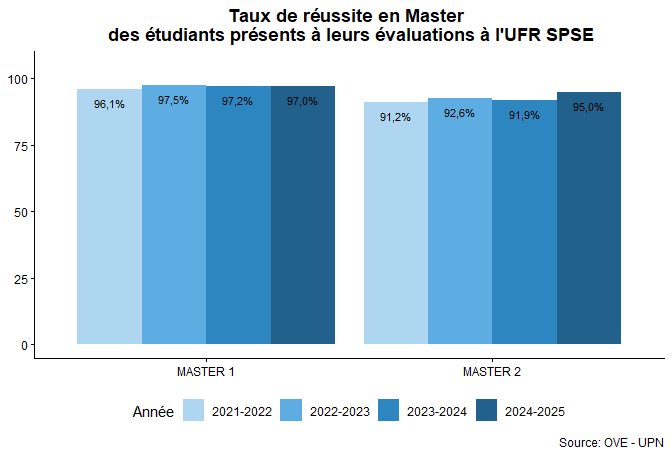 (1) En 2022-2023, 82% des étudiants de l'UFR SPSE inscrits en première année de Master ont obtenu la mention "Admis".