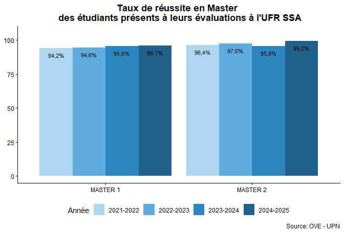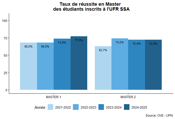 (1) En 2022-2023, 68% des étudiants de l'UFR SSA inscrits en première année de Master ont obtenu la mention "Admis".
