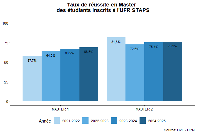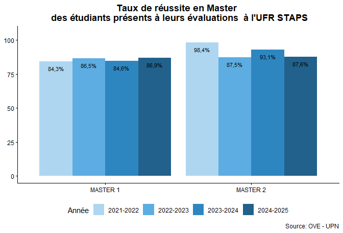 (1) En 2022-2023, 64% des étudiants de l'UFR STAPS inscrits en première année de Master ont obtenu la mention "Admis".